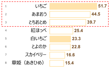 3分野をあわせた367アイテムの総合ランキング1位は「いちご」。