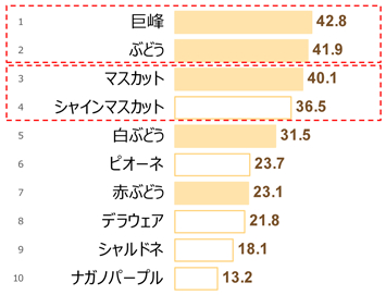 また、品種名がもともと広く浸透していたのは「ぶどう」です。