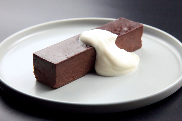 チョコテリーヌの材料として使用しているのは、コロンビア北部マグダレナ県シエラネバダ地域で生産されたカカオ64%のダークチョコレート。フレッシュで軽やかな酸味とタニックな渋みが心地よく広がり、ロゼワインのような華やかでフルーティーな香りが印象的です。カカオ本来の豊かな風味が最も堪能できるよう、テリーヌに仕上げました。