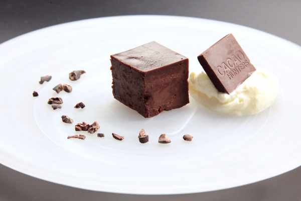 本品の材料は、チョコレートの世界大会であるInternational Chocolate Awards 2019で銀賞を受賞した、世界が認めた チョコレート、カカオハンターズの「シエラネバダ」を使用しています。カカオハンターズのチョコレートには、カカオ豆の産地名が付けられており、それぞれのカカオ豆が持つ特性を活かした香りと味わいになっています。中でも華やかな香りとフレッシュな酸味そして軽やかな渋味が特徴の「シエラネバダ」は、じっくりと味わって欲しいチョコレートです。