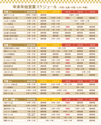(各店舗の年末年始営業スケジュールは下記にございます。)