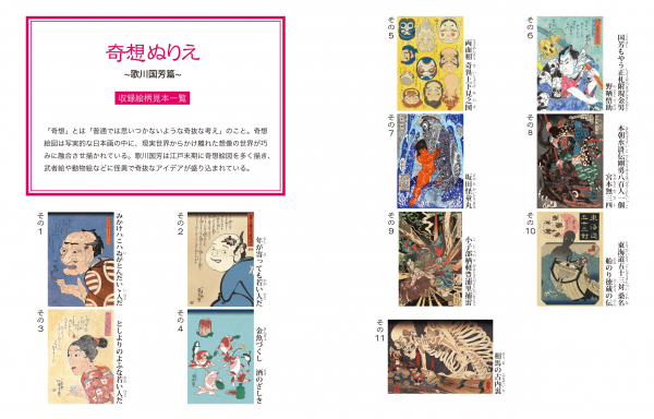 錦絵の数々を下絵とした「ぬりえ」11点を収録。