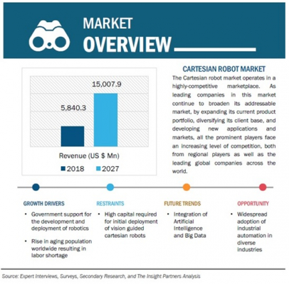 直交ロボットの世界市場、2027年に150億790万米ドル規模へ到達見込み(The Insight Partners発行レポートより)