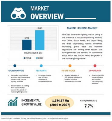船舶用照明の世界市場、2027年に30億8,000万米ドル規模へ到達見込み(The Insight Partners発行レポートより)