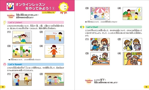GLOBAL CROWN のオンラインレッスンを5 回受けることができ、そのうち3回は紙面と連動しているため、この本で学んだ内容が復習できると同時に、実際に先生と話すことで生の英語に触れることができます。