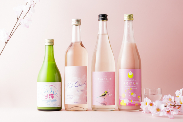 ▲【写真】左から、せとうち甘濁/Pink Cloud/さくらうぐいす/はるほたる(※すべて日本酒、新商品)