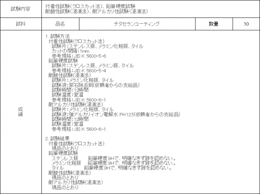 本製品 5年耐久型除菌抗菌コーティング剤「チタセランコーティング」についてのお問い合わせ