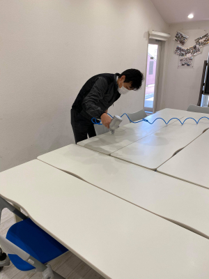 同店舗を運営する「株式会社ヨシダオートサービス」では、お客様をお迎えするため可能な限りの感染対策をおこなうべく、「チタセランコーティング」を使用し店舗全体への除菌抗菌加工をおこなった。