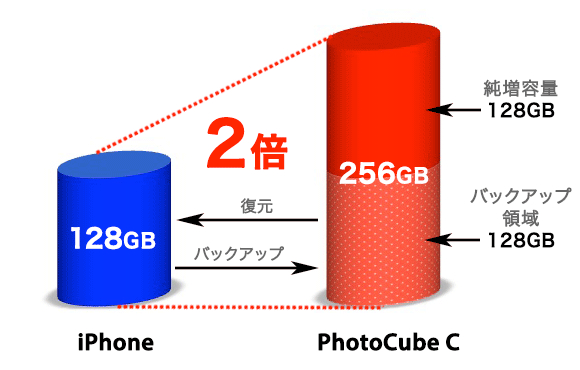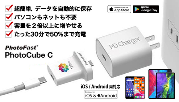 < スマートフォンのバックアップは、PhotoCube Cが解決します >
