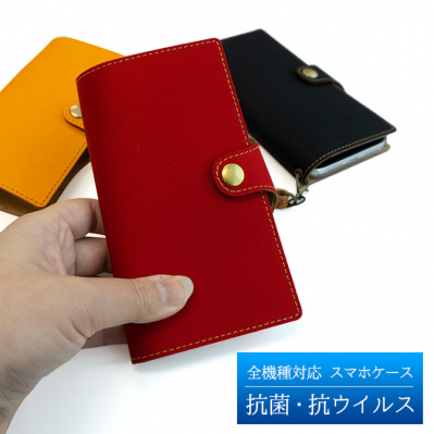 抗菌・抗ウイルスの加工生地を使用した、手帳型スマホケース。