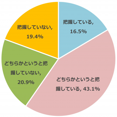 全国のビジネスパーソン男女540名を対象に、仕事上での自身の「強み」を把握しているか伺ったところ、59.6%が「把握している」(把握している:16.5%、どちらかというと把握している:43.1%)と回答しました。