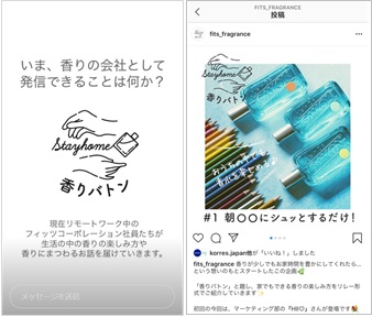 新型コロナウィルス感染拡大防止措置として全社員の在宅勤務体制を実施するなかで、各社員がそれぞれ香りを生活に取り入れており、その内容をコラム化して公開、インスタライブにて配信をしていきます。