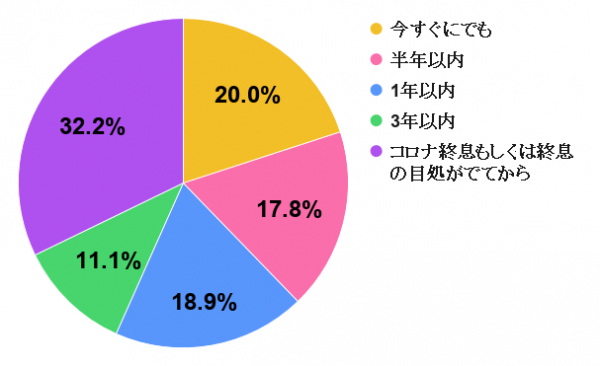 新型コロナウイルスにより、さまざまなビジネスに影響がでていることから、『事業検討を見送った』という回答もありましたが、独立開業・新規事業は引き続き検討を続けているという回答が多くを占めました。その一方で開業時期に関しては、コロナ終息もしくは終息の目処が立ってから、という回答も目立ったことから、WithコロナやAfterコロナに向けて情報収集をしていることが伺えます。