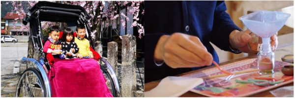 ・飛騨古川人力車 維 飛騨古川まつり会館前の人力車を、