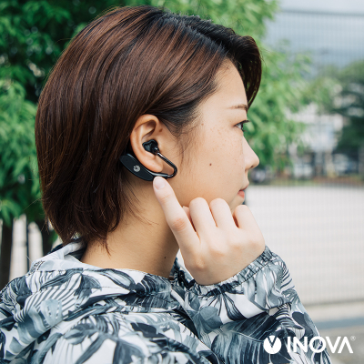 そのような問題を解決するため、当社はオープンイヤー型のワイヤレスイヤホン「INOVA earFit Novi(イノバ イヤーフィット ノビ)」を開発しました。