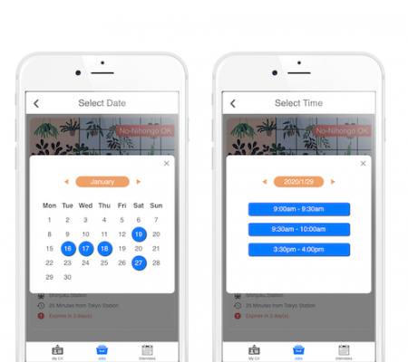電話に苦手意識のある外国人の声を聞いて開発した、面接の予約をアプリ上で完結できる機能です。