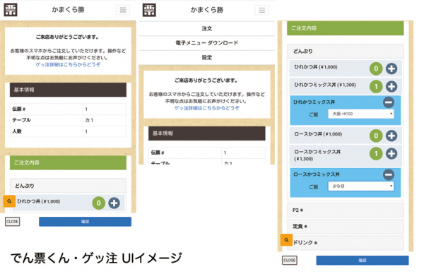 スマホ・モバイルオーダーシステム「ゲッ注」はコロナの時代における中小飲食店様でも導入しやすい価格として、月額10,000円(税抜)にて提供を開始いたしました。ゲッ注の利用には、POS・OES機能を有するでん票くんの基本契約が別途必要となります。(※基本契約月額1,000円〜3,000円。12カ月契約更新。)また注文伝票やQRコードほかレシートや領収書の印刷には、スター精密株式会社製プリンターMCP31L、MCP31LBが必要です。