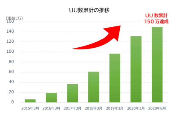サービス開始より右肩上がりで登録数・利用者数が増加、この度、UU数累計150万を突破しました。