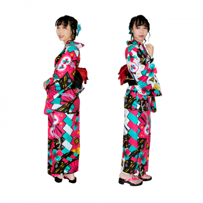 色鮮やかにデザインされた浴衣は「おまつり」のイメージにぴったり!