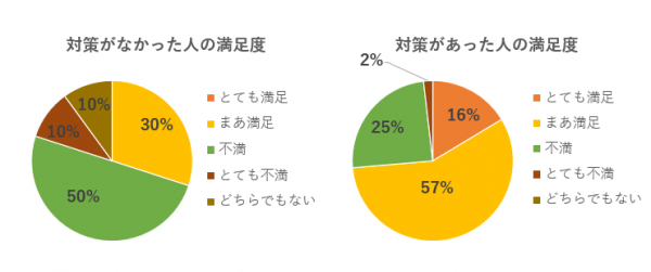 2)対策の有無による会社への満足度に大きな違い