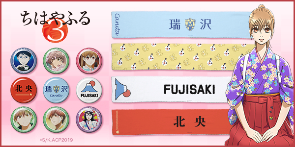 青春競技かるた漫画の金字塔「ちはやふる」TVアニメ版が「カワセル」に新登場!使いやすいマフラータオルと缶バッジが登場です!