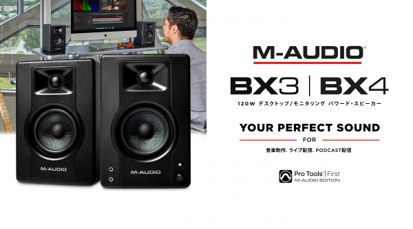 人気のM-Audio BXモニタースピーカーシリーズにBX3とBX4の新機種が登場。ライブ配信、Podcast番組作成、音楽制作など、デスクトップで120Wのスタジオグレード・サウンドが実現します。