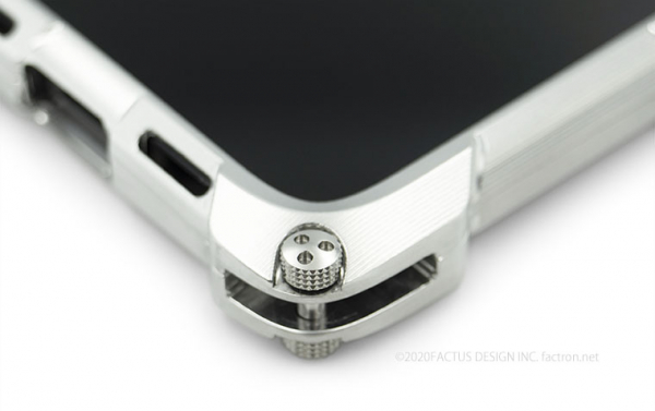 ジャケット素材は、航空機にも使われる強固で輝きが美しいアルミ合金最高グレード『超々ジュラルミンA7075』を使用。ジャケットカラーは、シャイニーシルバー・シャンパンゴールド・シャイニーレッド・ブラックの4色。FACTRON独自の三つ穴スペシャルネジで固定します。