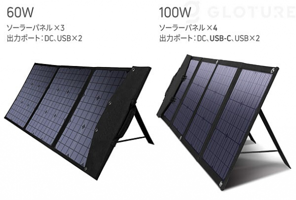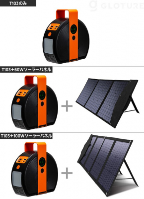今回、「T103 パワーバンク」には、より実用的に使っていただくためにポータブルのソーラーパネルを60Wと100Wの2モデルでご用意!