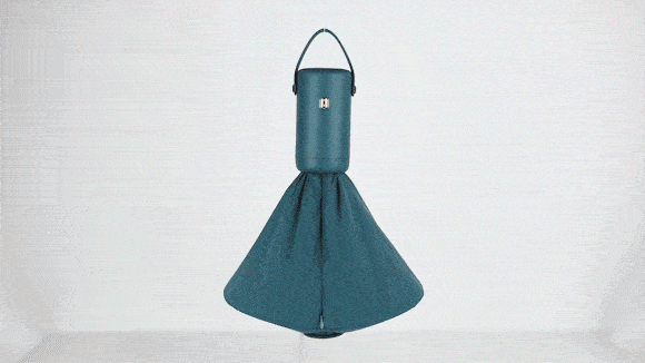 2)そこを回転させてボトムカバーを開き、乾燥袋を引き出すと自動的に広がります。