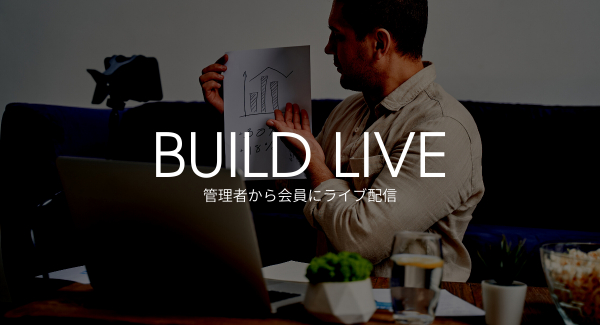ビルドライブ...主に管理者から会員に向けてのライブ動画配信を想定。セミナーなど、管理者が知識を提供するシチュエーションなどに。会員ランクによって配信するか否かを決定できます。