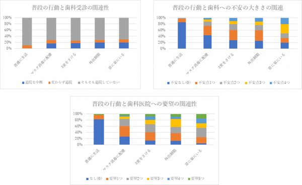(2)普段の行動への配慮が大きい人ほど、歯科医院に対して多くの不安要素を持っている、ならびに感染対策に関する多くの要望を持っている傾向が見られました。