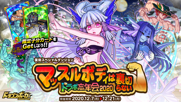 12月7日(月)メンテナンス後より、復刻スペシャルダンジョン「マッスルボディは裏切らない ドラポ忘年会2020」を開催いたします。