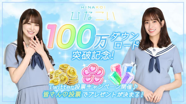 日向坂46公式恋愛シミュレーションゲームアプリ「ひなこい」100万ダウンロード突破!突破記念として特別ログインボーナス&ユーザーの投票でプレゼントが決まるキャンペーンを開催中!