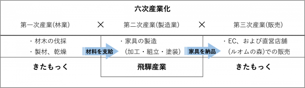 きたもっくが持つ豊富な森林資源とそこから調達可能な国産広葉樹、同社が保有する伐採・製材・乾燥技術と、飛騨産業が保有する「飛騨の家具(R)」の企画開発・デザイン・製造技術といった、両社の強みを掛け合わせることにより、県産材を活用した家具製作を通じて、地域の発展、持続可能な社会の実現に貢献します。
