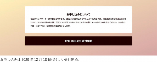 今回はバックオーダー式の製造方法を採用。1つの製品あたり20脚以上のご注文が集まった時点で、製造工程に移ります。