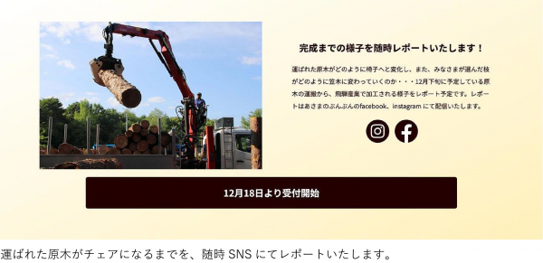 本合意に基づき、きたもっくより支給される北軽井沢産の広葉樹を使ったチェアを、飛騨産業が製作します。12月18日(金)よりきたもっくWebサイトにてオーダー受付を開始しますので、合わせてお知らせいたします。