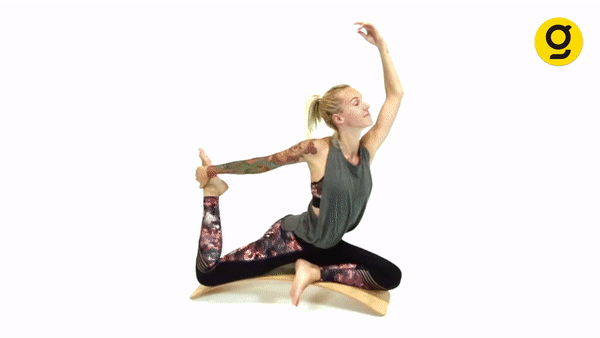 ダスブレットの上で反って、背筋とヒップを鍛えましょう。