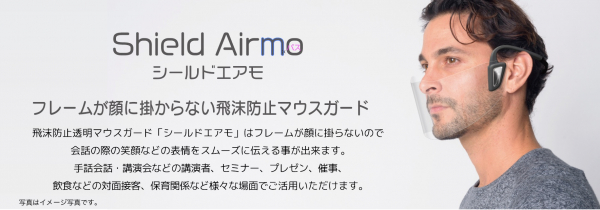 マウスガードもおしゃれで機能的に! フレームが顔に掛からない飛沫防止透明マスク「シールドエアモ」2021年1月新発売。 表情がしっかり伝わるから対面コミュニケーションに最適なツールです。