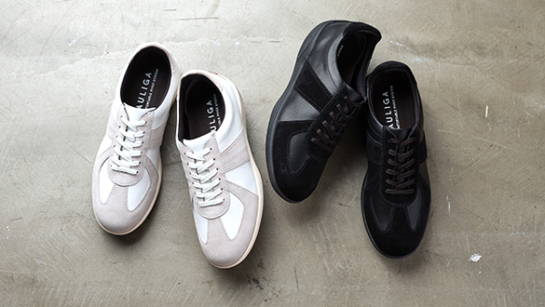 今回ビジネスシーンでも使いやすい「ストレートチップ」の革靴タイプと、西ドイツ軍がトレーニングシューズとして使用していた「ジャーマントレーナー」をベースにしたスニーカータイプの2型を発売します。