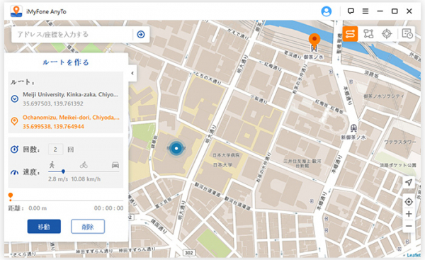 ・「速度のカスタマイズが可能」:移動速度を設定してルートを確認します。AnyToを使って、徒歩、サイクリング、または運転速度をシミュレートできます。