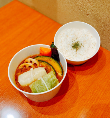 【商品内容】 スープカレー、ライス、にんじん、なす、かぼちゃ、レンコン、キャベツ、チーフのお母上直伝のロールキャベツ2ヶ