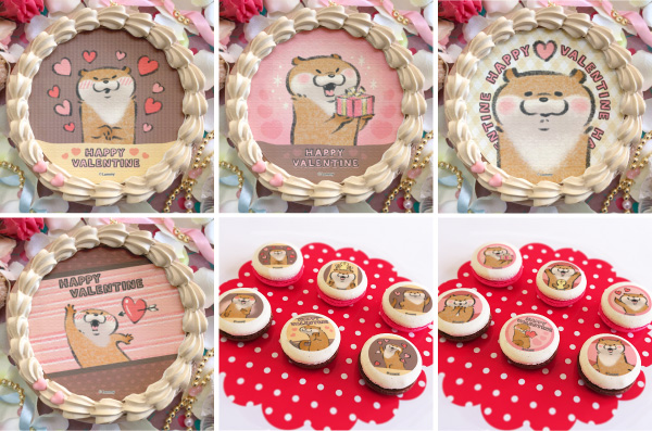 可愛い嘘のカワウソのキュートなバレンタイン限定デザインのホールケーキ(全4種)とマカロンセット(全2種)が登場しました♪