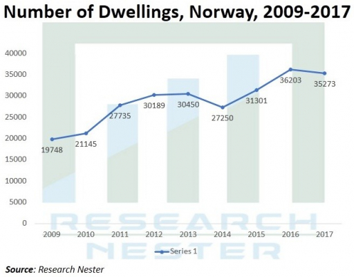 India Brand Equity Foundation(IBEF)によると、インドの不動産セクターは、2017年の1,200億米ドルから、2030年までに1兆米ドルの市場規模に達すると予想されています。さらに、Statistics Norwayによると、ノルウェーの総住宅数は2009年の19,748戸から2018年には31,647戸に増加しました。