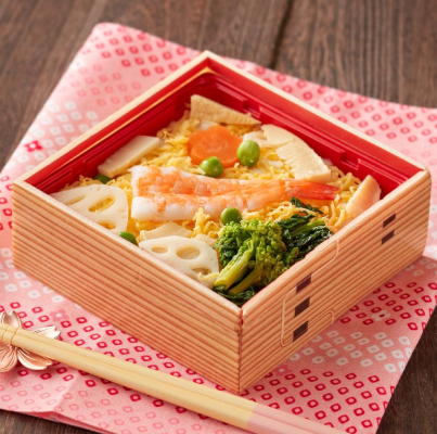 今回は、島根県特産で赤身に評価が高い石見ポークのもも肉の薄切りとわかめを使い、だしをきかせて炊き上げたカツオ風味のだしと石見ポークの旨みのバランスがよい炊き合わせた「石見ポークの若竹煮」、乱切りにした竹の子を醤油、砂糖で味付けし、さば節で風味をだしかつおをまぶした「土佐煮」に、京都洛西産の筍をはじめ、菜の花、海老、蓮根、花にんじん、錦糸玉子を華やかにまぶして酢飯の間に甘辛く味付けした鶏そぼろを敷いたちらし寿司をセットにしてお手頃価格にて春限定でご提供します(単品商品の取り扱いもしています)。3品とも解凍するだけでお召し上がりいただけますので、非常に便利。夕食はもちろん、お酒のあてにもピッタリ。ご自宅で旬をご堪能ください。