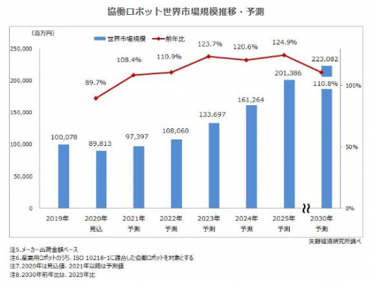 【矢野経済研究所プレスリリース】協働ロボット世界市場に関する調査を実施(2020年) 2030年の協働ロボット世界出荷台数を102,378台、出荷金額を2,230億8,200万円に拡大予測