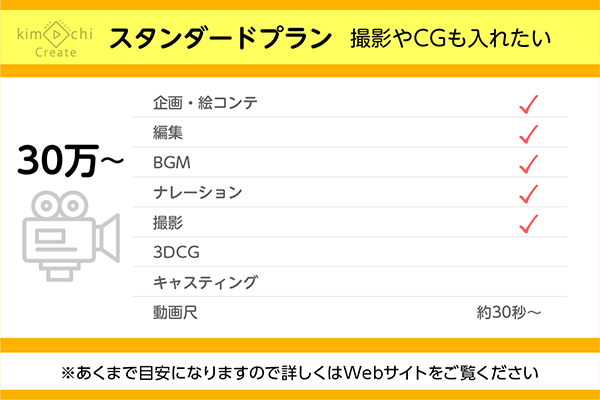 撮影やナレーション、モーショングラフィックスでの演出を伴う動画制作など、コストを抑えつつも動画のクオリティを上げたい方向けのプランです。