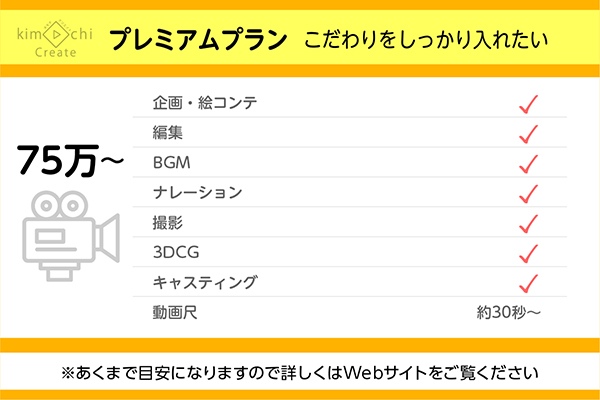 高品質な撮影、アニメーション演出、3DCGを使用した演出など、細部にまでこだわった動画制作をご希望の方向けのプランです。