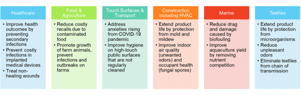 抗菌技術は新型コロナウイルスの感染拡大により一挙に注目を浴びることとなり、全世界数十億の人々に対し、汚染された表面からの保護を提供しています。これらの製品の背後にある技術や作用メカニズムは、この市場動向に注目する企業にとって考慮すべき重要な点となっています。