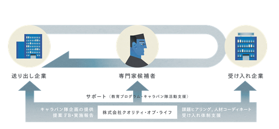 企業とシニア人材のマッチングによって、企業が抱える様々な経営課題を解決する『生涯プロフェッショナル/Engun』事業を推進する株式会社クオリティ・オブ・ライフ(本社:東京都千代田区、代表取締役:原 正紀、以下QOL)は、大企業ミドル・シニア向け中小企業支援体験プログラム「プロフェッショナル・キャラバン隊」に参加する企業を2021年3月下旬より募集を開始します。