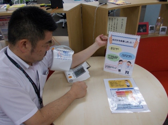 「健康広場」には血圧計を設置し、基準値を示すことで、従業員が容易に自分の健康状態を自覚することができるようになっています。